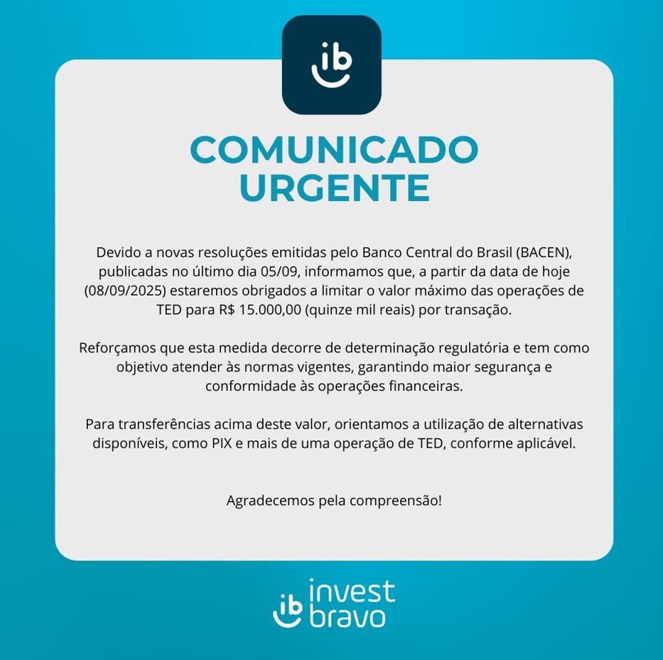 Bravo Serviços de Administração e Correspondente Bancário Ltda (CNPJ nº 20.877.537/0001-41), operando como Invest Bravo não é uma instituição financeira (banco). Somos uma plataforma digital que oferece serviços bancários. A atuação como correspondente bancário é oficialmente reconhecida pelo Banco Central do Brasil (BACEN), permitindo que instituições financeiras e outras entidades autorizadas contratem correspondentes bancários. Por meio de uma infraestrutura tecnológica terceira no modelo BaaS, a Invest Bravo opera como uma white label da Pagme Instituição de Pagamento Ltda (CNPJ nº 34.471.744/0001-06), devidamente autorizada pelo BACEN.